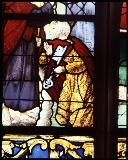 BEIGNON, église paroissiale Saint-Pierre, verrière O, vue de Saint Pierre, panneau a3.Immatriculation