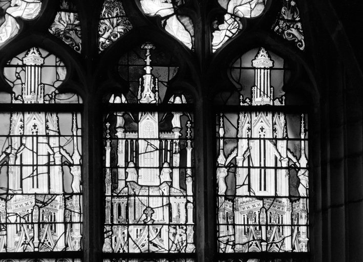 Verrière de la baie 1, panneaux c4 - d4 : dais d'architecture (état en 1980)Immatriculation