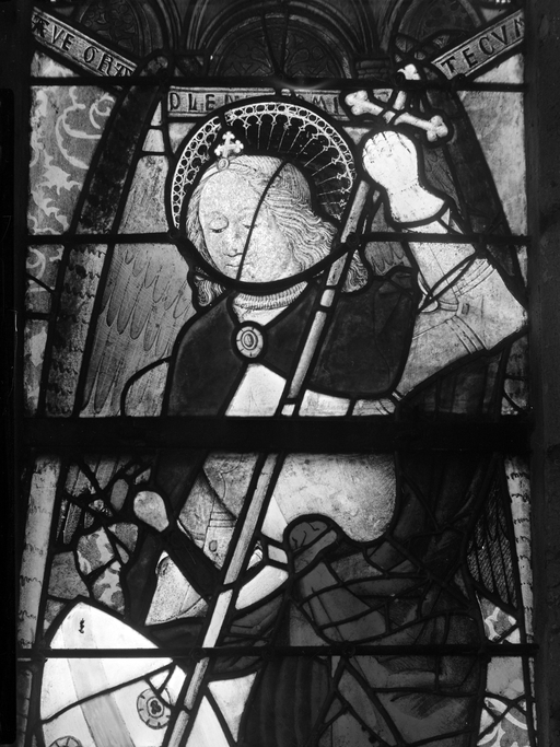 Verrière de la baie 5, panneaux c2-3 : Saint Michel et le dragon (état en 1980)Immatriculation