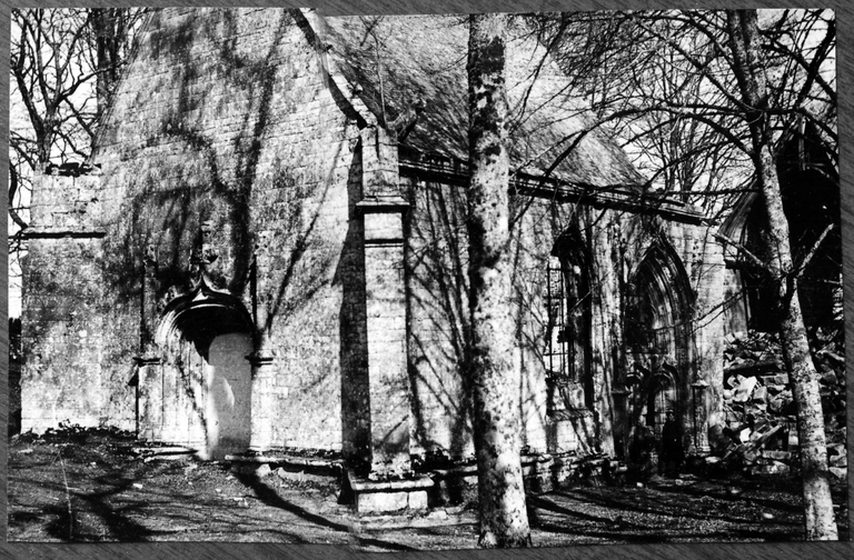Vue générale prise du sud-ouest après écroulement de la partie centrale (vers 1940-1950)Immatriculation