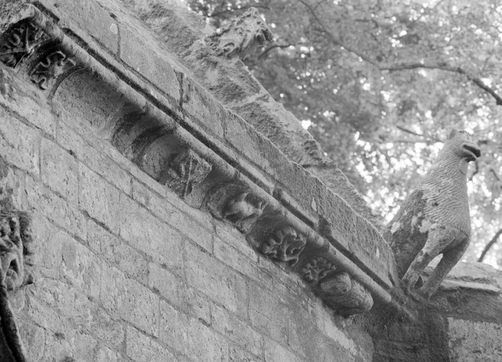 Elévation latérale sud du choeur : corniche.Immatriculation