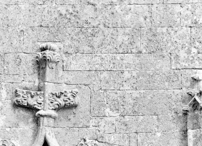Elévation antérieure : fleuron et inscription.Immatriculation