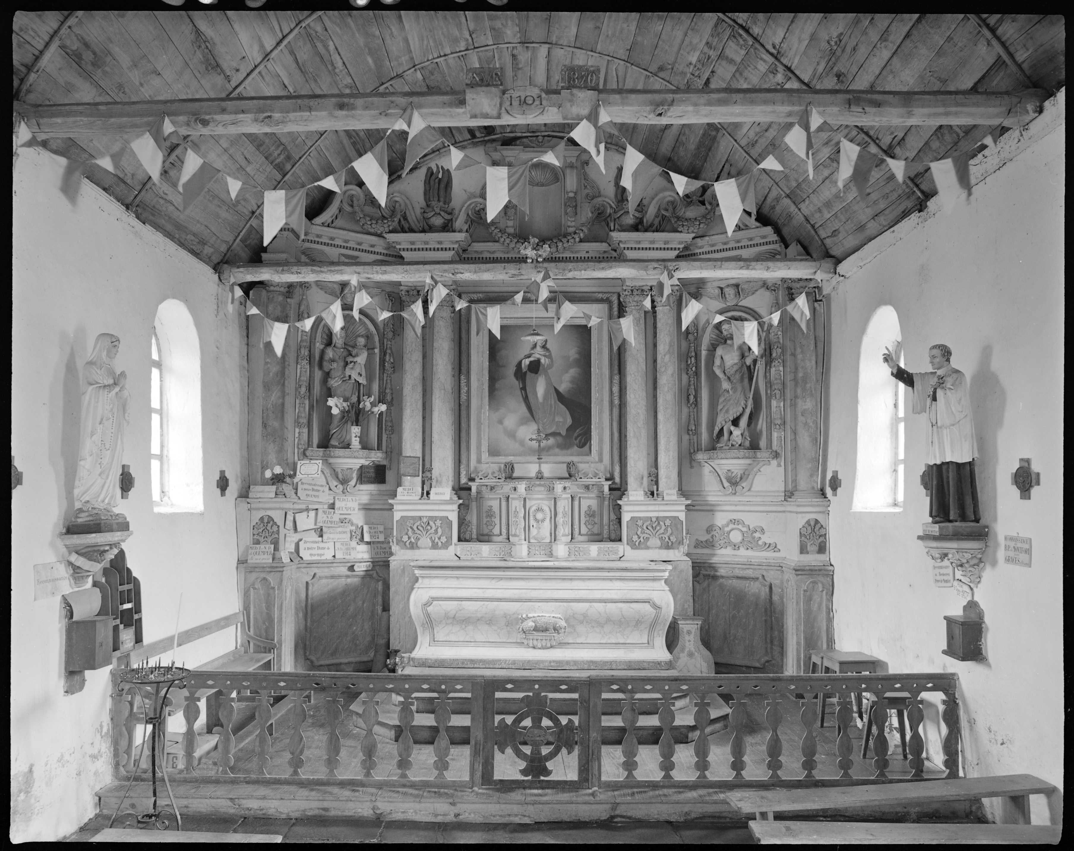 Ensemble du maître-autel : autel, tabernacle, retable, gradin d'autel, tableau d'autel, chapelle de pèlerinage Notre-Dame de Quempé (Saint-Congard),