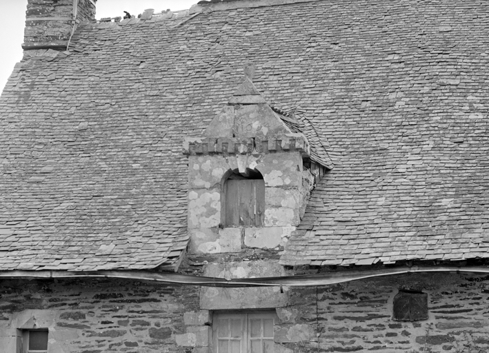Maison, élévation ouest : la lucarne portant la date 1624 (état en 1980)Immatriculation