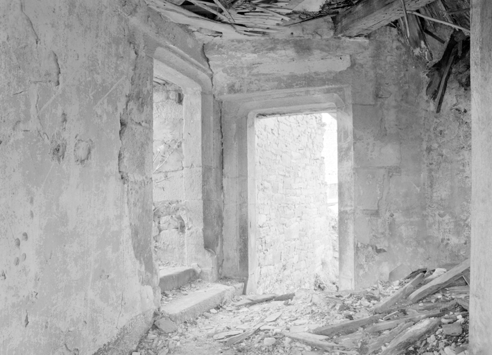 Escalier, palier du comble et portes d'accès au corps central.Immatriculation