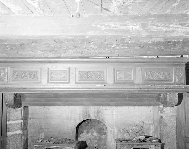 Intérieur, cheminée, détail du linteau sculptéImmatriculation