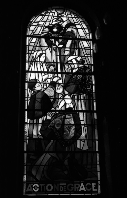 Verrières (6) : Vierge à l'Enfant, Laissez venir à moi les petits enfants, l'Offrande, l'Action de grâce, le Sacrifice, la Communion, église paroissiale Saint-Maimboeuf (Le Theil-de-Bretagne),