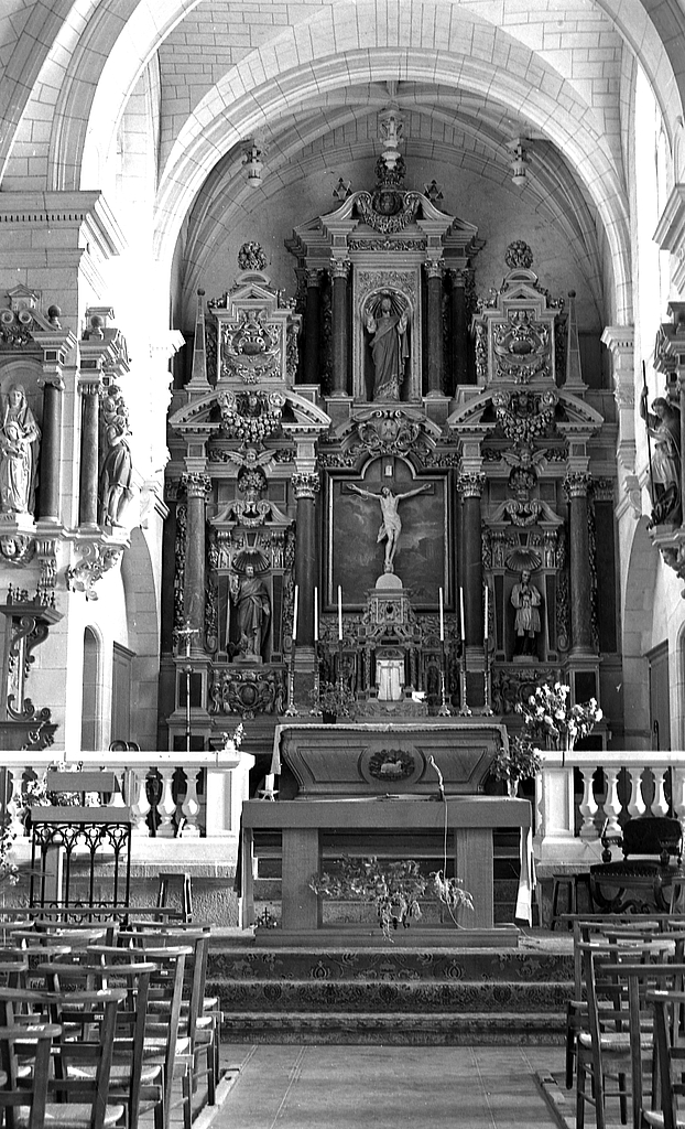 Autel, retable, tabernacle (maître-autel, autel tombeau, retable architecturé, tabernacle à ailes), église paroissiale Saint-Pierre (Coësmes),