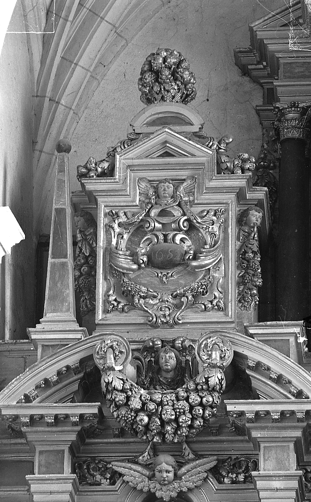 Autel, retable, tabernacle (maître-autel, autel tombeau, retable architecturé, tabernacle à ailes), église paroissiale Saint-Pierre (Coësmes),