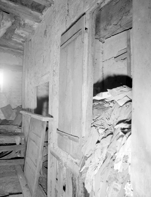 Logis - étage, couloir distribuant l'escalier du grenier, cloison à pan de bois.Immatriculation