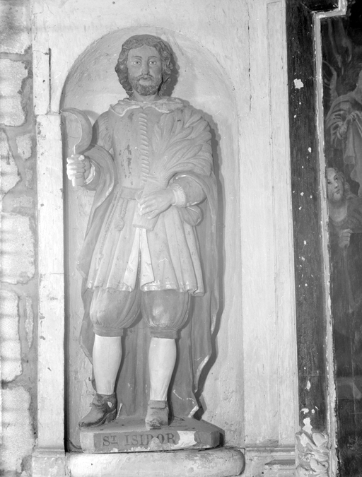 Statue (2, d'applique, petite nature, en pendant) : saint Isidore, saint Sébastien, église paroissiale Saint-Pierre-es-Liens (Plescop),