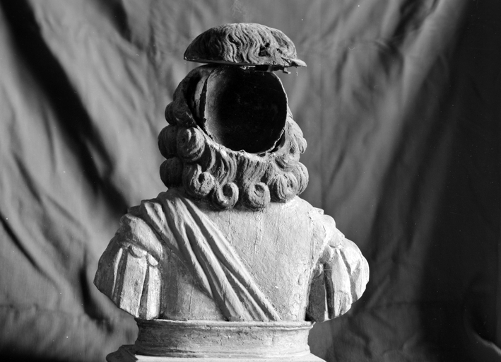 Buste reliquaire de saint Hamon, vue de revers : reliquaire ouvert.Immatriculation