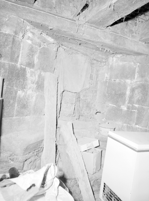 Rez-de-chaussée : fenêtre droite à coussiège, vue intérieure.Immatriculation