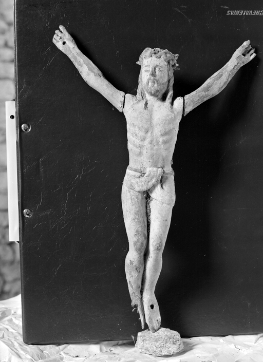 Statuette de Christ en croix vue de face.Immatriculation