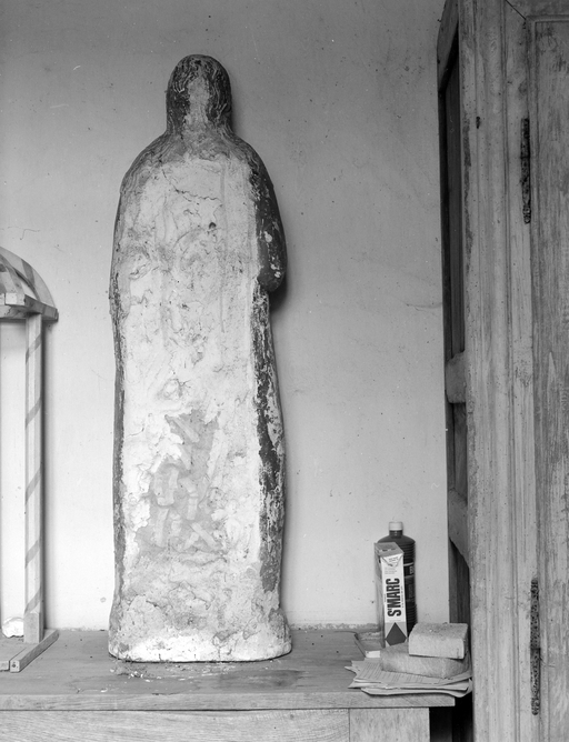 Statue de sainte : vue de revers.Immatriculation
