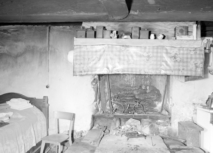 Rez-de-chaussée, mur pignon gauche, face ouest : cheminée.Immatriculation