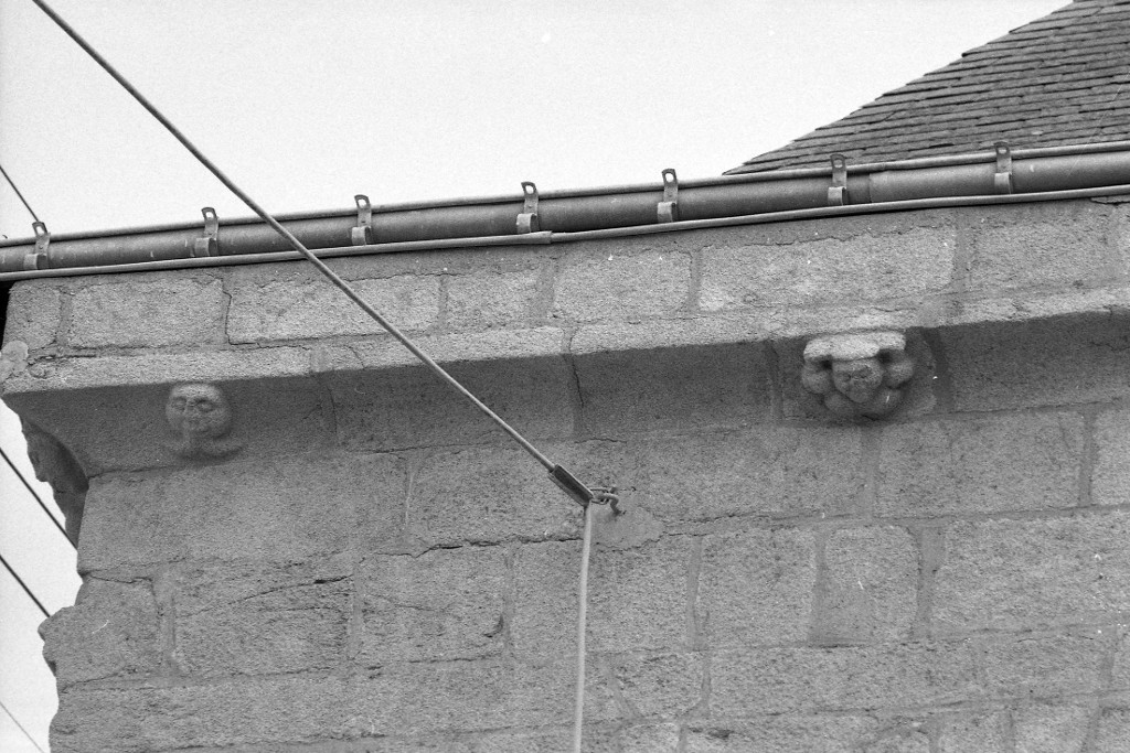 Figures anthropomorphes sculptées sur la corniche.Immatriculation