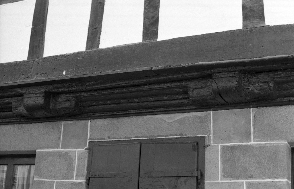 Entretoises et sablière de chambrée. La sablière de plancher a probablement disparu lors de la reprise en sous-œuvre du rez-de-chaussée.Immatriculation