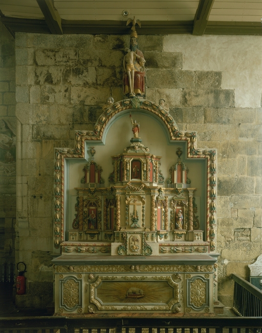 Autel, retable, tabernacle (autel secondaire, retable cadre, tabernacle à ailes), dit de la pitié du père, église Paroissiale Saint Hernin (Locarn),
