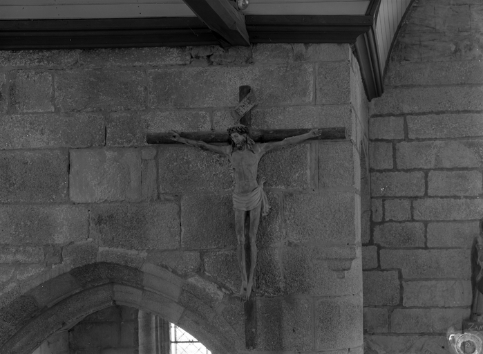 Croix (d'applique, petite nature) : Christ en croix, église Paroissiale Saint Hernin (Locarn),