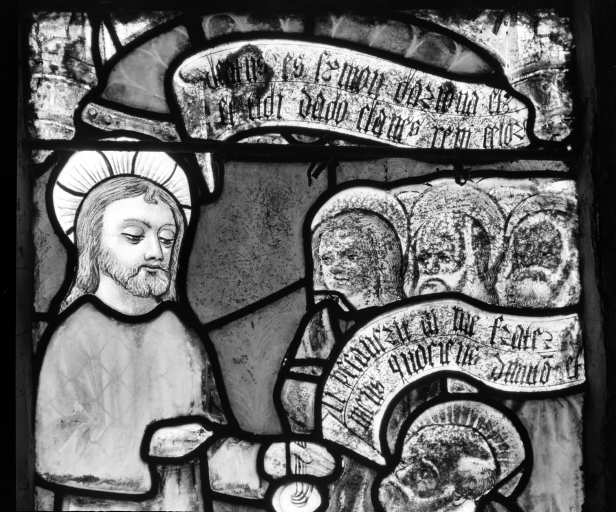 Verrière à personnages de la baie 0 (maîtresse-vitre) : Scènes de la vie de saint Pierre,