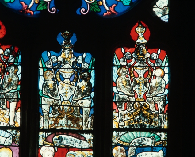 Verrière à personnages de la baie 0 (maîtresse-vitre) : Scènes de la vie de saint Pierre,