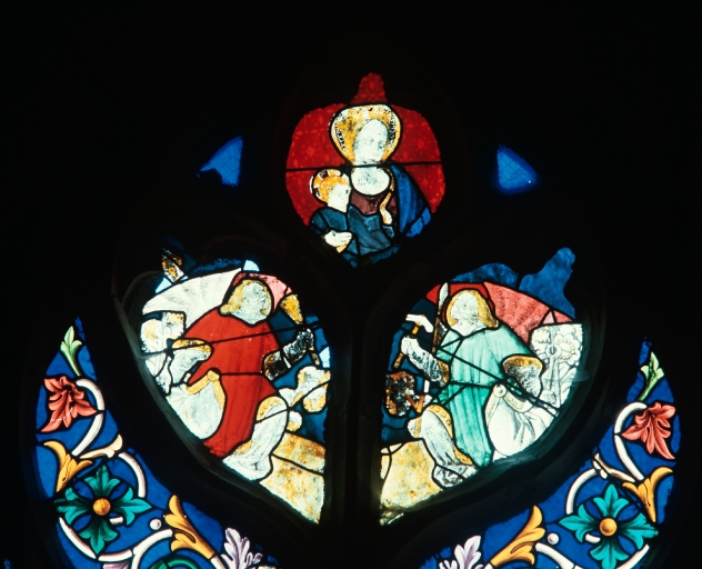 Verrière à personnages de la baie 0 (maîtresse-vitre) : Scènes de la vie de saint Pierre,