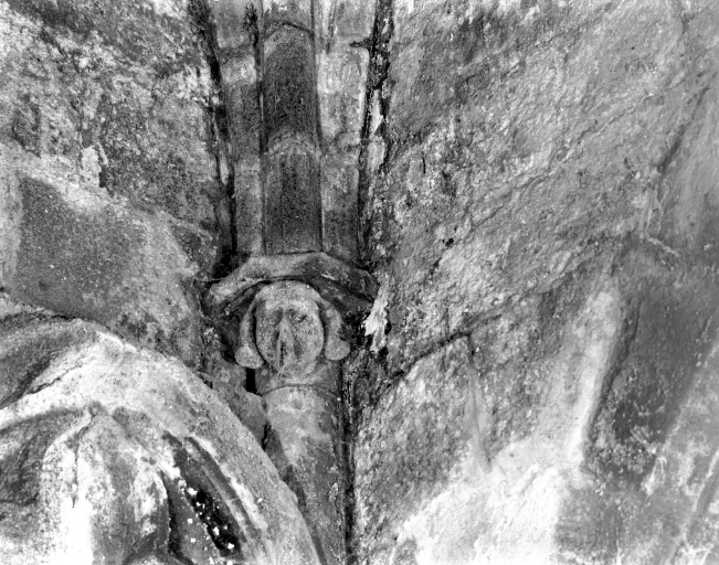 Porche occidental : angle sud-ouest, détail : sculpture d'un culot à la retombée des ogivesImmatriculation