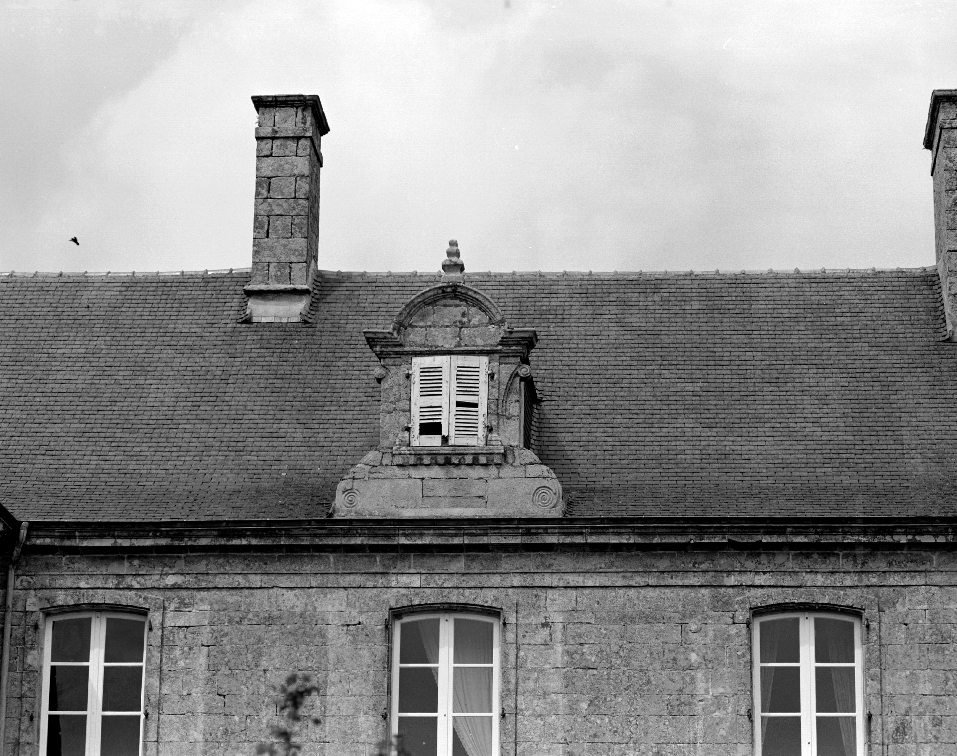 Elévation sud, corps central, lucarne.Immatriculation