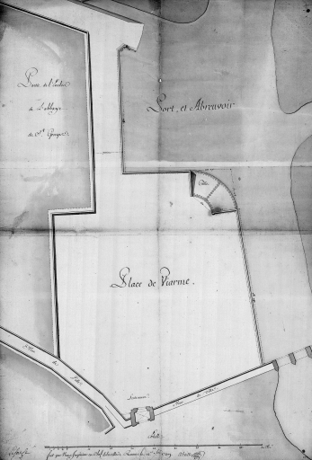 Plan du port et de la place de Viarmes, dessin, par Abeille, 1739 (A. C. Rennes)Immatriculation