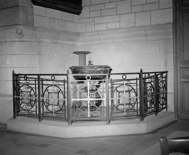 Vue générale des fonts baptismaux, bas côté nord.Immatriculation