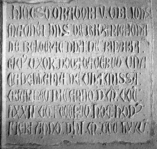 Eglise abbatiale ; vue intérieure : oratoire côté sud de la nef, inscriptionImmatriculation