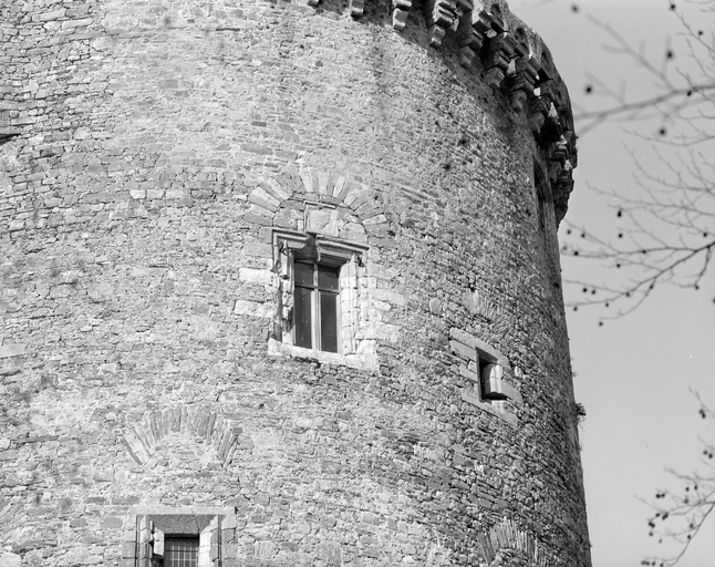 Le donjon, face sud, niveaux supérieurs, vue générale.Immatriculation