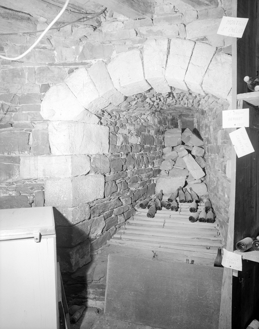 Le donjon, rez-de-chaussée, cave, embrasure, côté nord-est, vue générale.Immatriculation
