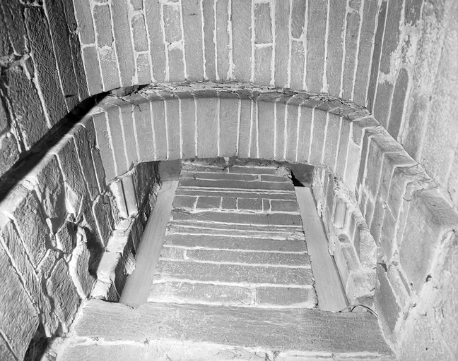 Le donjon, rez-de-chaussée, revers de la porte d'entrée, vue générale.Immatriculation