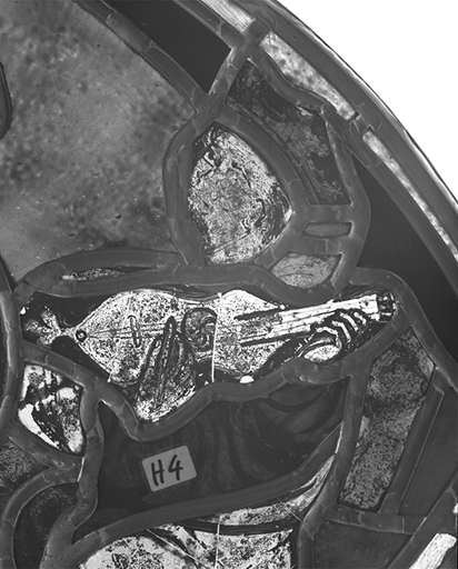Tympan, quadrilobe de droite, lobe gauche : détail du roi de droiteImmatriculation