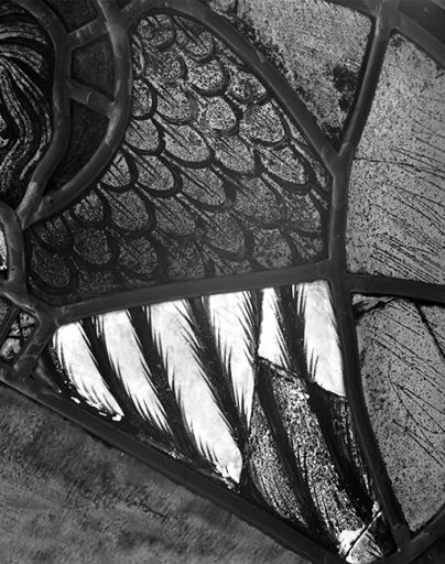 Tympan, rose, quadrilobe supérieur droit : détail de l'aileImmatriculation