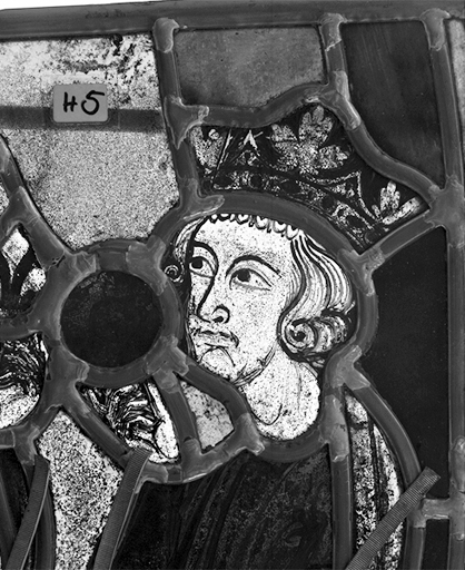 Tympan, quadrilobe gauche, lobe inférieur : détail du visage du personnage de droiteImmatriculation