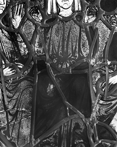 Tympan, quadrilobe gauche, lobe inférieur : détail de la robe du personnage centralImmatriculation