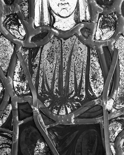 Tympan, quadrilobe gauche, lobe inférieur : détail du buste du personnage centralImmatriculation