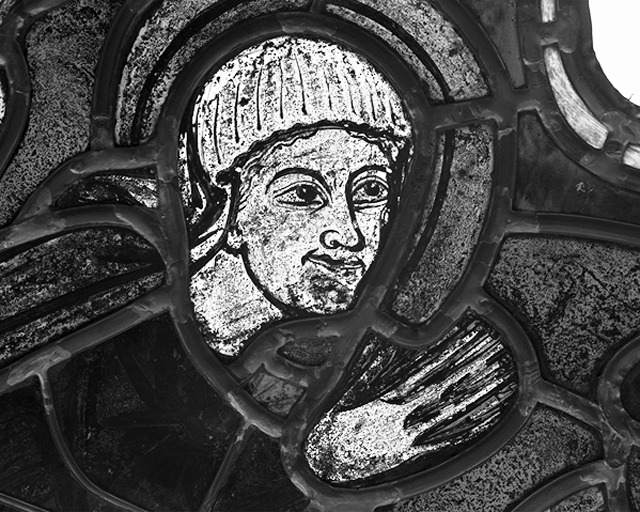 Tympan, rose, trilobe inférieur : détail de la tête d'un personnageImmatriculation