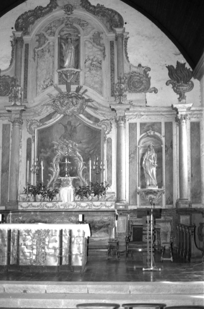 Autel, retable, tabernacle, gradin d'autel, exposition, tableau, statues (2) (maître-autel, retable architecturé, autel tombeau) : ascension, saint Maur, sainte Emérence, saint pape, église paroissiale Saint-Martin (Chanteloup),