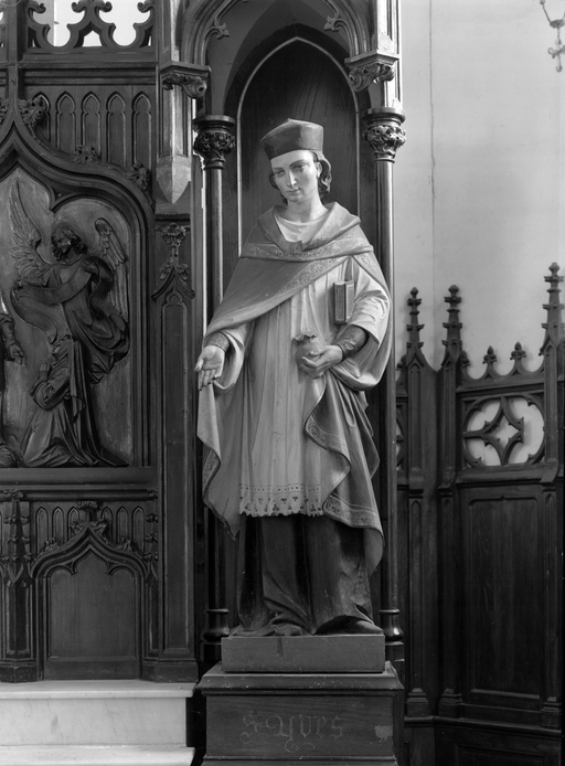 Autel retable du Choeur, statue de saint Yves, vue générale.Immatriculation