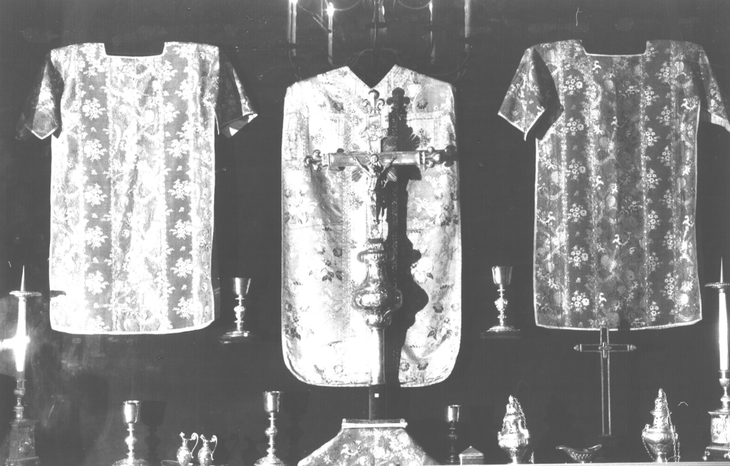 Chasuble, dalmatiques (2), voile de calice, bourse de corporal, église paroissiale Saint-Tugdual (Grand-Champ),