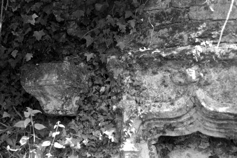 Transept, bras nord, mur est : niche-crédence et culot (état en 1983)Immatriculation