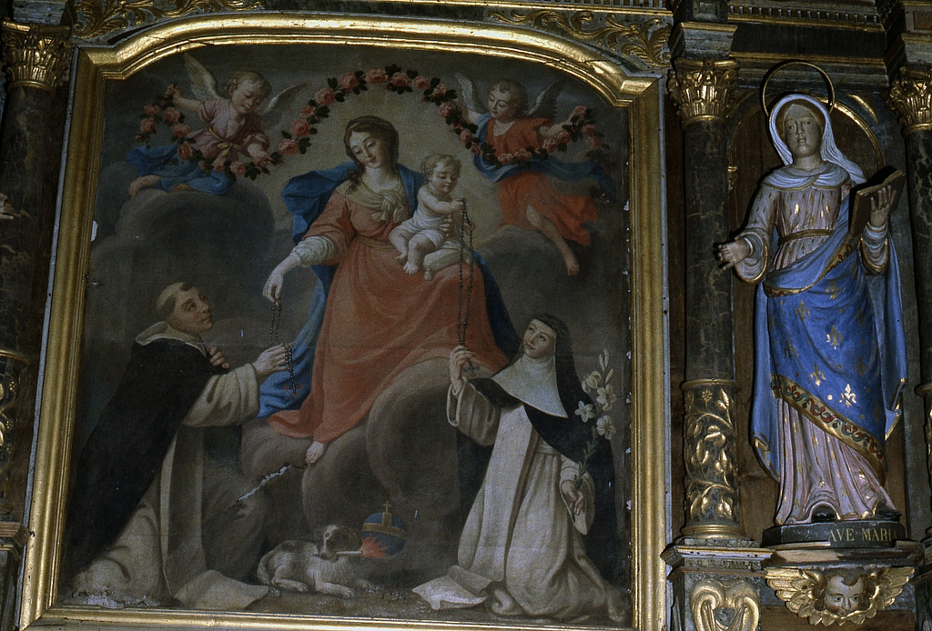 Tableau (tableau d'autel) : Donation du rosaire, église paroissiale Saint-Vinoc (Plouhinec-29),