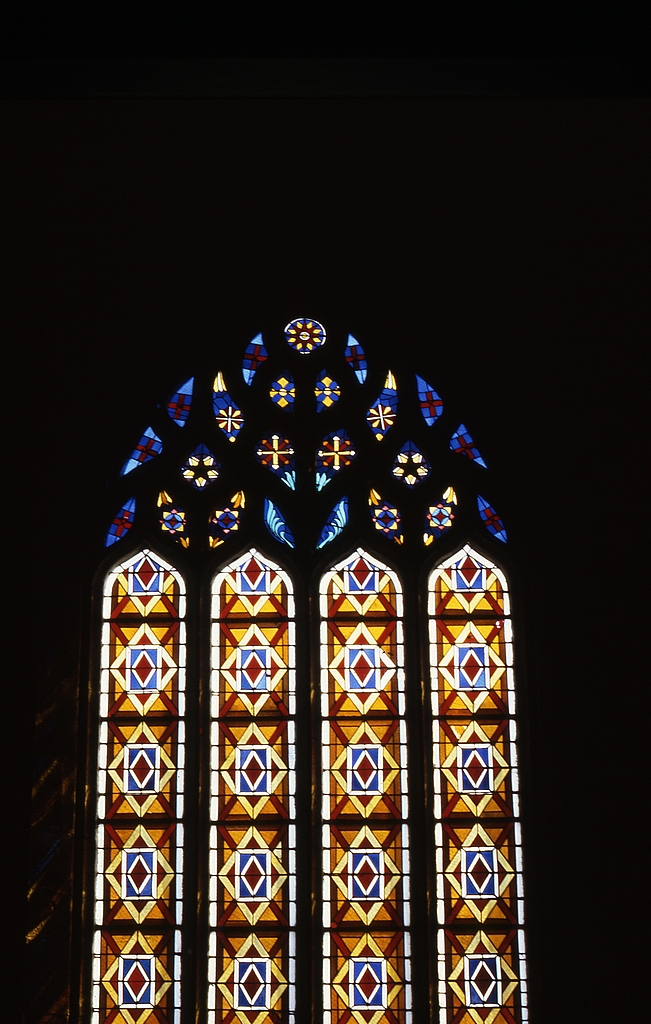 Verrière (3, verrière décorative, verrière en losanges, baies 3, 4 et 6), église paroissiale Saint-Vinoc (Plouhinec-29),