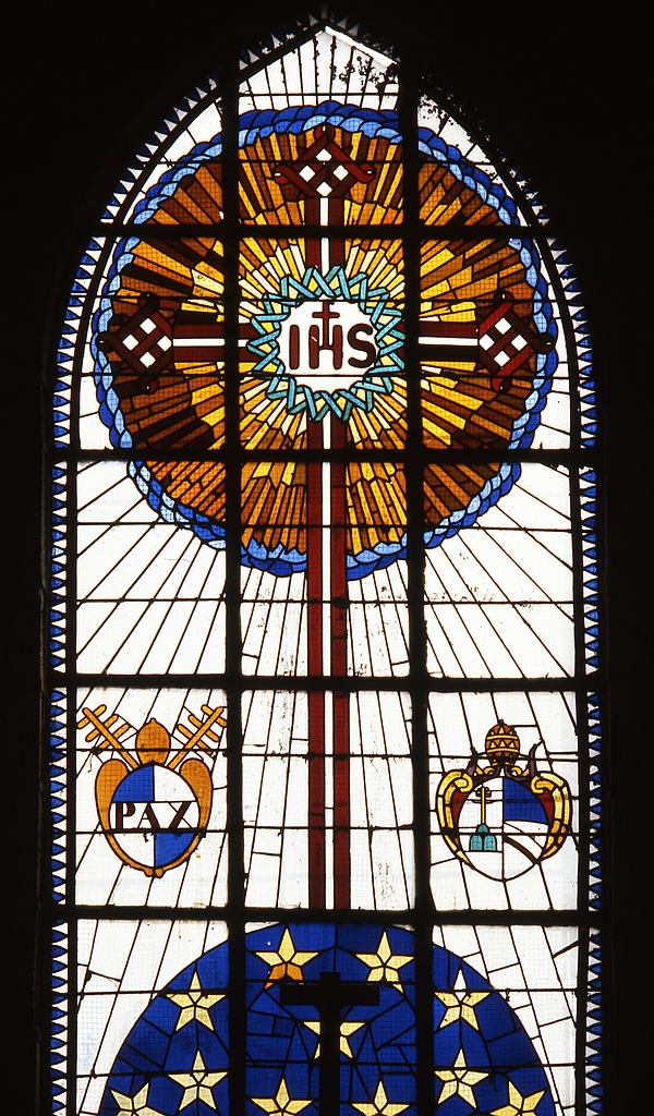 Verrière (3, verrière figurée, verrière figurée décorative), chapelle Saint Pierre (Mahalon),