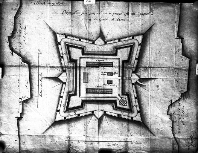 Projet d'un fort proposé sur la presqu'île des Espagnols fait à Brest en mai 1694 par VaubanImmatriculation