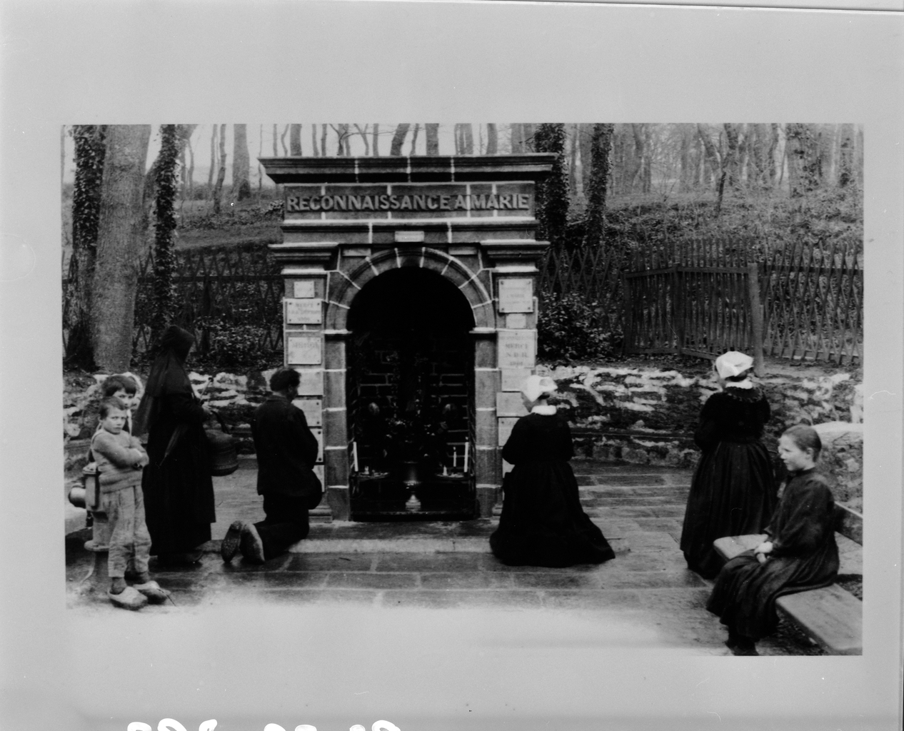 Fontaine de dévotion Notre-Dame du Feunteun An Itron Maria : vue générale vers 1900. Coll. Villard, S.D.A. Quimper.Immatriculation